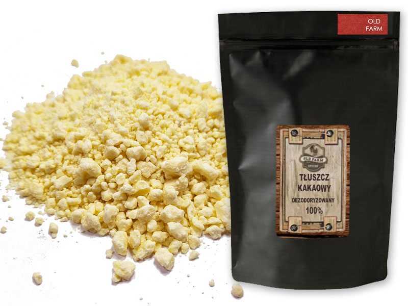 Masło kakaowe naturalne 100% - nieodtłuszczone, dezodoryzowane , bez cukru, bez dodatków, bez konserwantów. Tłuszcz kakaowy nie zawiera glutenu, może być także spożywana przez wegan. Dezodoryzacja usuwa nieprzyjemny zapach z masła kakaowego.